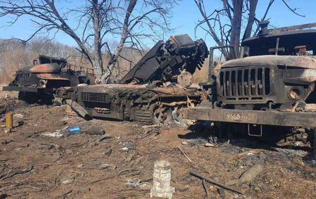 Фото: ВСУ уничтожили колонну российской техники возле Тростянца (facebook.com/UkrainianLandForces)
