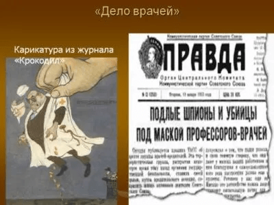 Некоторое время тому назад органами Государственной безопасности была раскрыта террористическая группа врачей, ставивших своей целью, путем вредительского лечения, сократить жизнь активным деятелям Советского Союза.